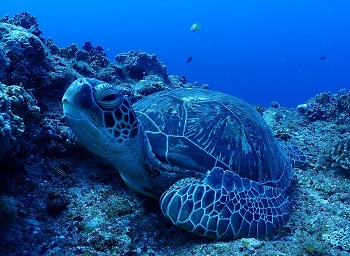 アオウミガメにタイマイ。大きなサイズの子がまだ朝の寝ぼけ様子でうとうとしてました~