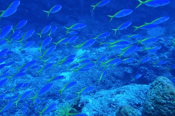 ギンガメアジも朝からばっちり見れました!ヒメテングハギの群れも迫力あり!